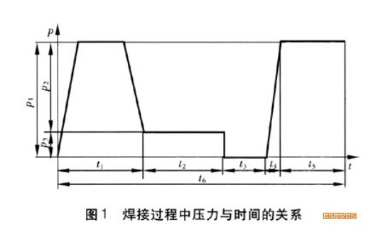 在熱熔(róng)焊接工藝參數中,與焊接直接有關的參數有焊接溫度、時間和壓力。在焊接溫度確定的(de)情況(kuàng)下壓力和時間的關(guān)係見圖1