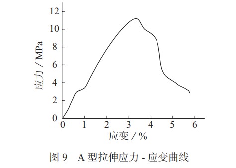 第一種(zhǒng) A 型拉伸應力(lì) – 應變曲線。焊接壓力(lì)在 0.02 MPa 下的接頭試樣拉伸試驗結果如圖 9 所示。在低應力(lì)且未發生明顯(xiǎn)的塑(sù)性變形情況下,試樣在接頭焊縫處突然斷裂。